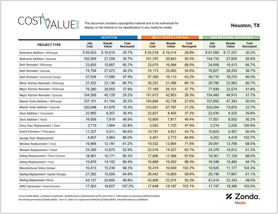 According to Zonda Media’s 2023 Cost Vs. Value Report, previewed below (full version available at costvsvalue.com), a tiny bath remodel with very basic finishes averages almost $24,000 in the Houston metro area: