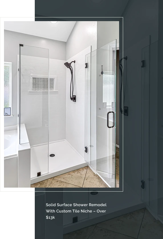 Small, solid-surface showers are going to start around $10,000 before glass. Upgrades can easily push these projects into the $15,000+ range when it’s all said and done.