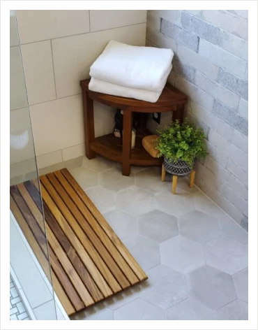Ramped Tile Base & Teak Seat For Roll-In Shower